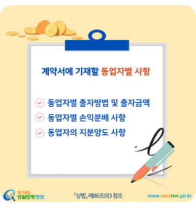 좋은 동업계약서는 다음 내용을 포함해야 합니다.